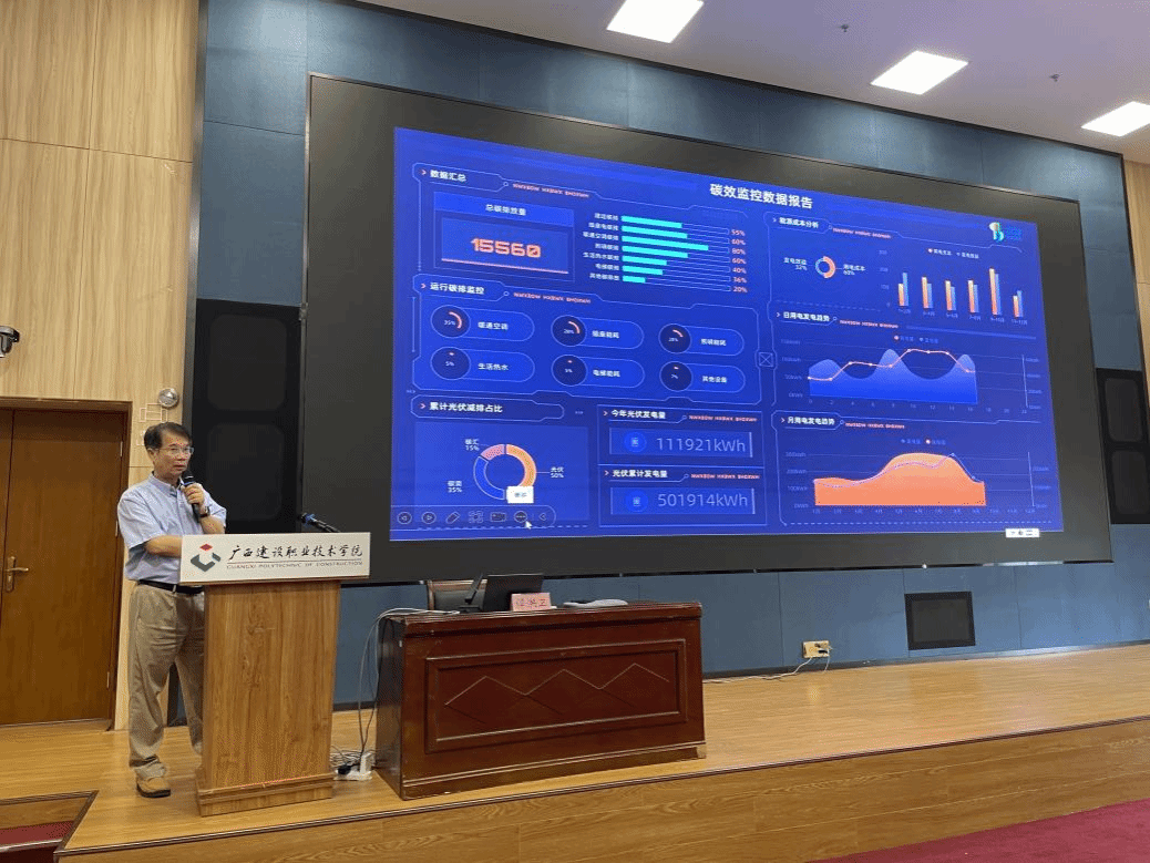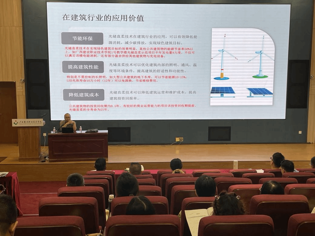 随着研修的深入,广西乐鱼全球最大体育平台_乐鱼(中国)科学研究设计院副院长、教授级高级工程师许维超围绕“智慧校园建设及其在校园节能降碳中的应用”阐述了绿色智能技术在推动城市更新中的重要作用。中国乐鱼全球最大体育平台_乐鱼(中国)科学研究院建研防火科技广西公司总工豆鹏亮对“既有乐鱼全球最大体育平台_乐鱼(中国)改造项目消防技术与法律难点问题”进行了详细解析,为学员们提供了法律与技术层面的双重保障。广西建院设备与环境学院教师莫铭瑞博士做了题为《光储直柔实现既有乐鱼全球最大体育平台_乐鱼(中国)改造与功能提升》的专题报告,对光储直柔项目进行了深入浅出的讲解。他还带领学员们走进广西建院1号教学楼参观“光储直柔”乐鱼全球最大体育平台_乐鱼(中国)建设示范项目,让学员们亲身体验绿色乐鱼全球最大体育平台_乐鱼(中国)的魅力与优势,做到理论知识与实践操作相结合。