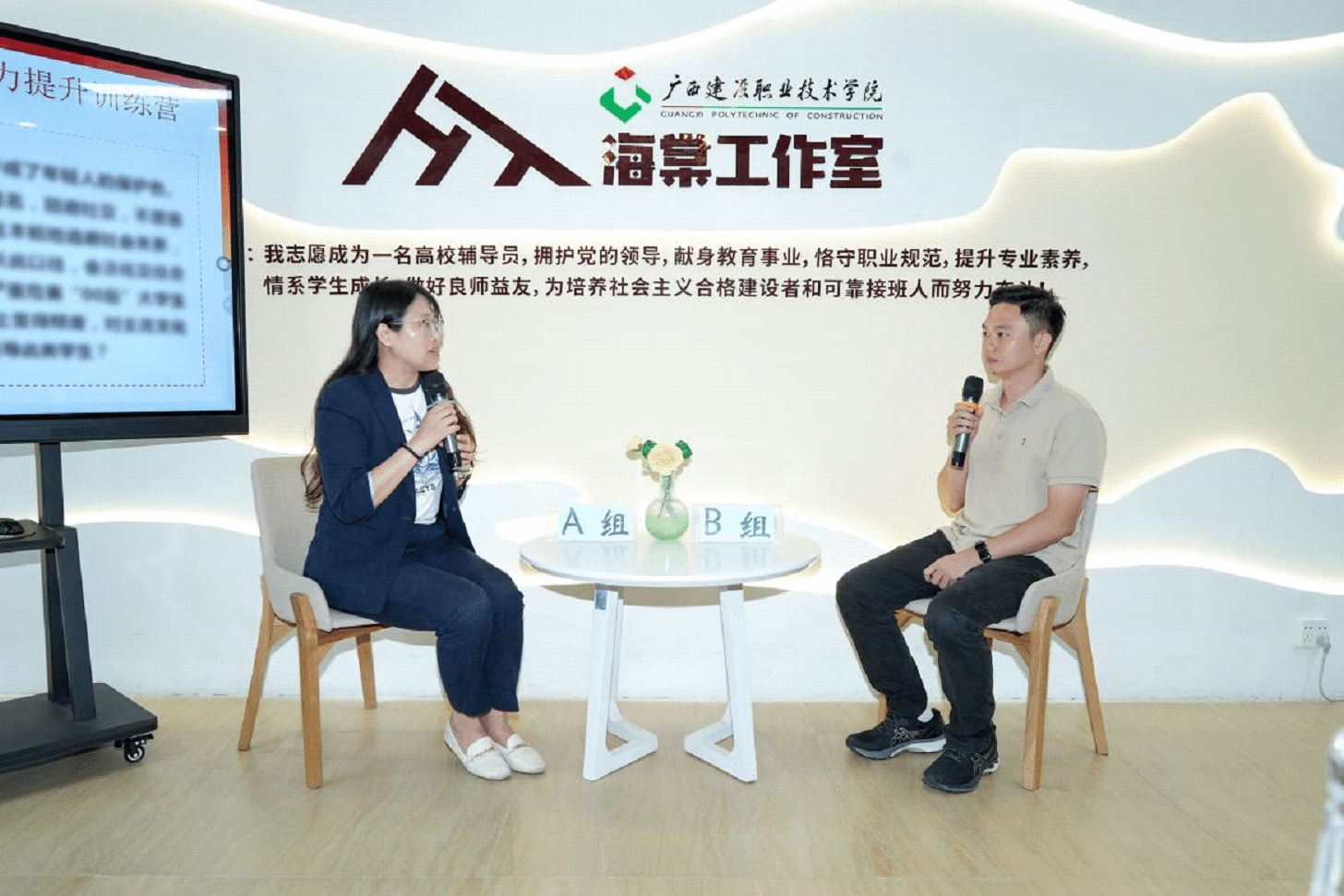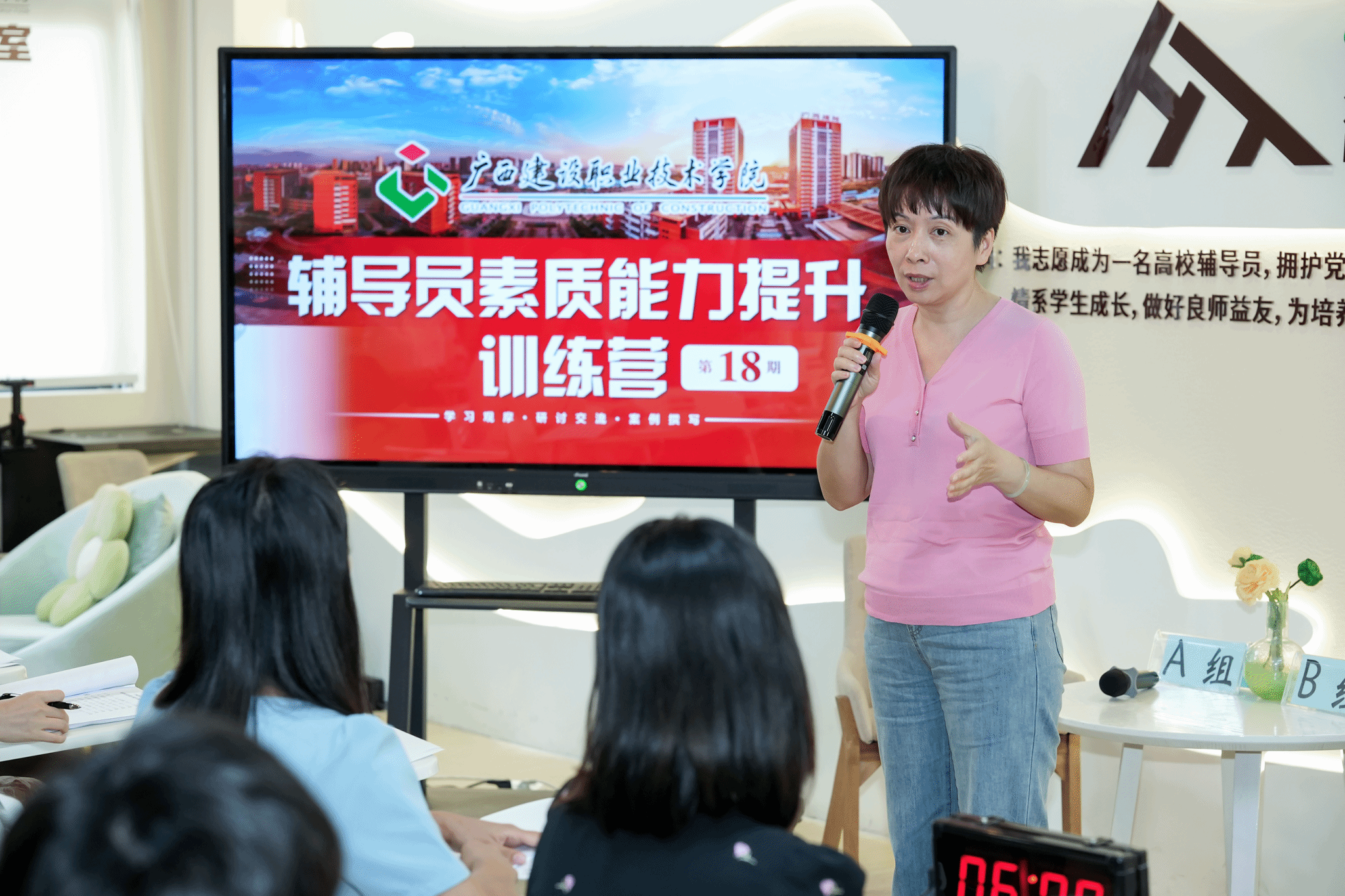 本期训练营模拟辅导员素质能力大赛案例研讨赛项,采用AB角形式,以“你提问,我回答”的方式,围绕案例共同辨析原因、研讨对策、总结规律,考察辅导员分析、研判和解决问题的能力。研讨分“学员分组研讨+指导总结点评”两个环节,通过研讨交流及分析总结的形式帮助学员形成清晰的工作思路和有效的工作措施。