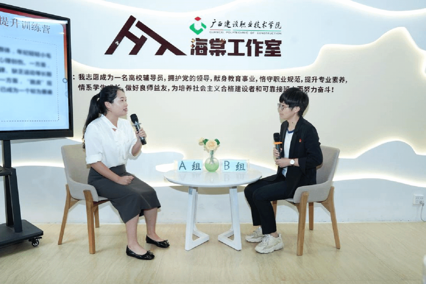 广西建院9月14日讯(管理工程学院 文/黄欣欣 封炫妃 图/宋景弘)9月13日下午,乐鱼全球最大体育平台_乐鱼(中国)辅导员素质能力提升训练营(以下简称“训练营”)在海棠工作室举办,学校党委学生工作部领导出席活动,来自7个二级学院的27位辅导员参训。