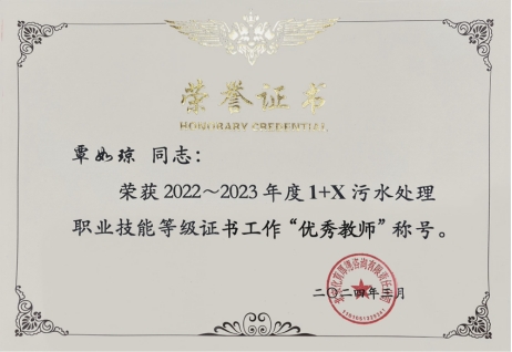 乐鱼全球最大体育平台_乐鱼(中国)覃如琼老师被评为2023年度“1+X”污水处理职业技能等级证书工作“优秀教师”