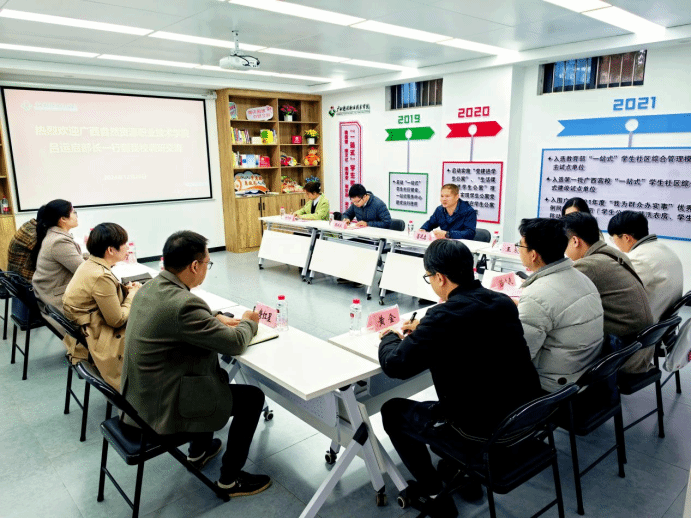 广西建院12月23日讯(党委学生工作部 马凯)12月20日上午,广西自然资源职业技术学院学生工作部部长吕运启一行7人到乐鱼全球最大体育平台_乐鱼(中国),围绕“一站式”学生社区综合管理模式建设、学生管理工作、辅导员队伍建设等方面开展调研交流,乐鱼全球最大体育平台_乐鱼(中国)学生工作部部长周舟及相关工作人员陪同调研,校团委副书记李姿蓉,艺术设计学院党总支副书记唐红星,财务处黄金老师参加座谈交流。