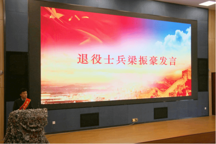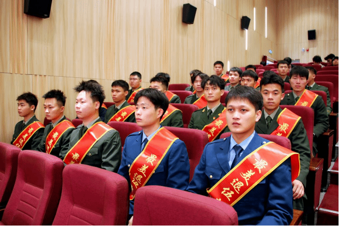 退役士兵、给排水2401班陈建龙在仪式上发言,分享自己入伍当兵的成长故事。陈建龙退役前是一名首都北京的武警战士。他说,自己的爷爷是参加过抗美援朝的老兵,爷爷热血、英勇的故事激励自己从小立志成为一名军人。五年的武警生涯,陈建龙从最初的随性自由、与世无争、个性张扬,到后来“见红旗就扛、见荣誉就争”,令行禁止、绝对服从命令,也经历过短暂的迷茫与不适,是成为一名守护首都的合格武警战士的理想和捍卫维稳精锐之师荣耀的决心,让他克服万难,百炼成钢。