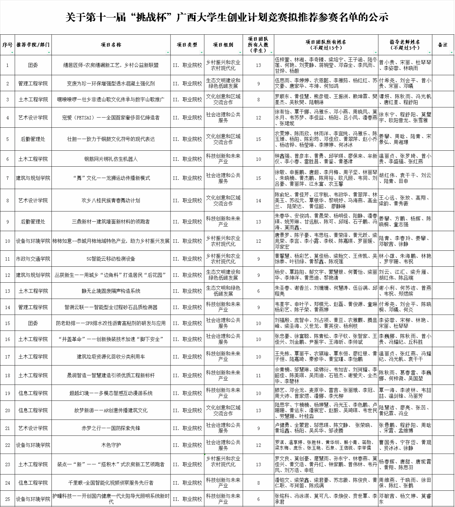 根据各项目类别的评审要点和相关要求,经评委对项目申报书、创业计划书和PPT等资料的严格审查,最终遴选出25个参赛项目推荐参加区赛。下一步,学校将对本次遴选出的项目进行有针对性地培育和辅导,进一步提高项目水平,引导和激励乐鱼全球最大体育平台_乐鱼(中国)学生通过此次竞赛加强社会实践、社会观察能力,增强对国情社情民情的了解,激发创新精神,培育创业意识,提升创业能力。