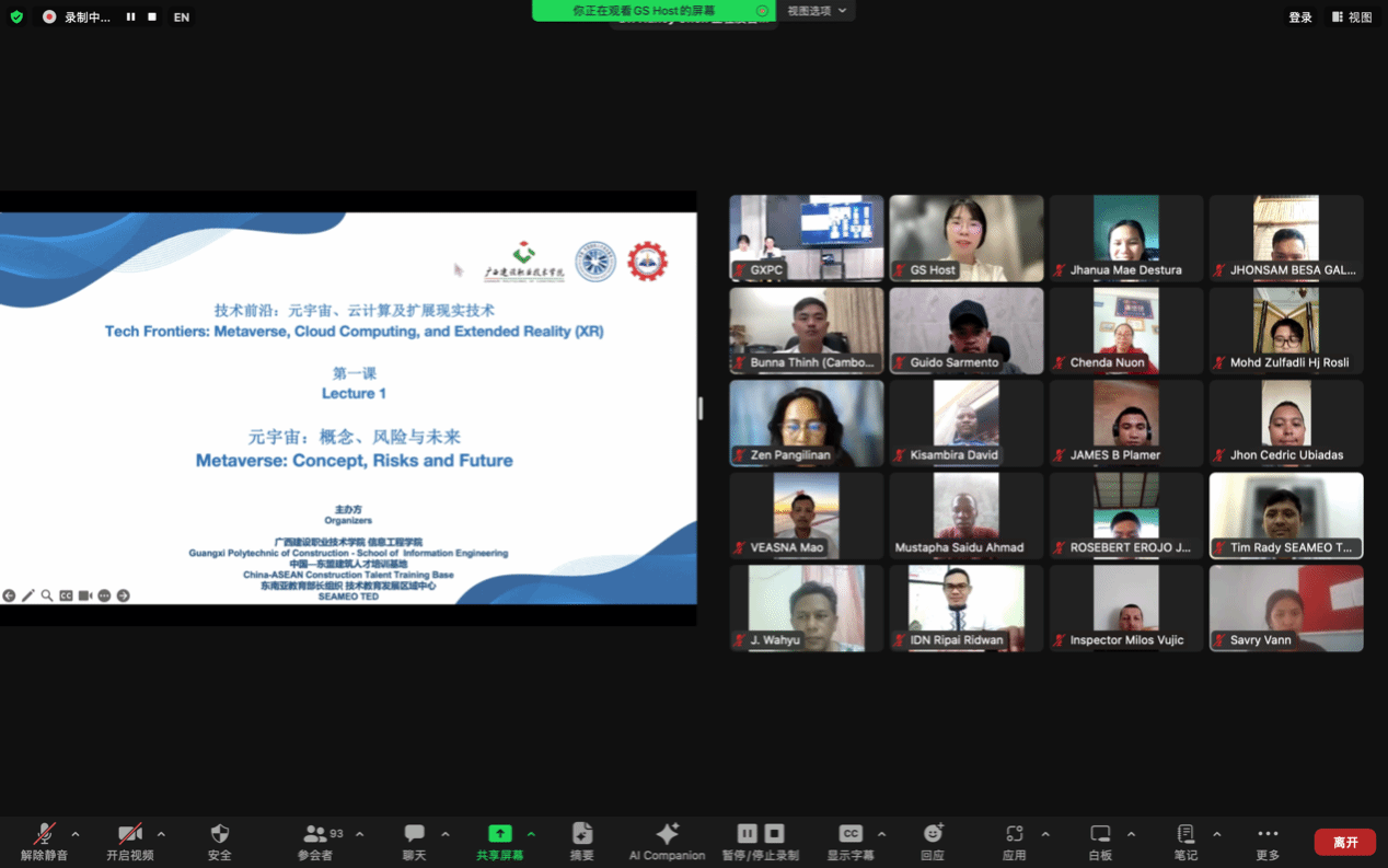学校与东南亚教育部长组织技术教育发展区域中心联合举办了面向东盟的2个专题共6场线上培训。其中,学校艺术设计学院的3位教师以“广西侗族传统乐鱼全球最大体育平台_乐鱼(中国)装饰”为主题,向东盟师生做了《广西传统乐鱼全球最大体育平台_乐鱼(中国)解析与传承》《广西地域文化在现代室内装饰设计中的应用》《广西传统装饰与现代室内装饰工艺的结合》等三场分享;学校信息工程学院3名青年教师聚焦科技前沿,分别以《元宇宙:概念、风险与未来》《云计算入门:服务类型、关键技术、部署模式》《扩展现实(XR)技术在乐鱼全球最大体育平台_乐鱼(中国)与室内相关领域中的应用》为题做专题培训。老师在授课期间,全程使用英语向海外学生、学者与行业从业人员进行授课和答疑,吸引了约660人次参与。这两个系列课程充分展示了学校教育贴近行业发展前沿和立足广西优势特色,探索创新教学模式,持续深化国际影响力提升,面向东盟打造“建院职教”品牌,提升中国职教的魅力。