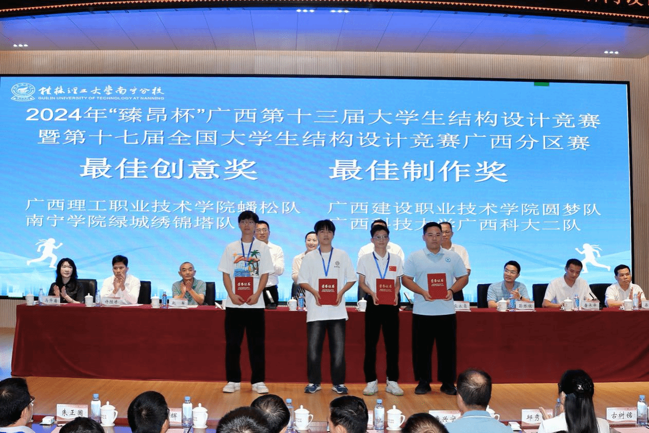 广西建院6月30日讯(土木工程学院 于思柳)6月27日—30日,由自治区住房城乡建设厅和自治区教育厅联合主办的广西第十三届大学生结构设计竞赛暨第十六届全国大学生结构设计竞赛广西分区赛在桂林理工大学南宁分校圆满落下帷幕。经过激烈角逐,乐鱼全球最大体育平台_乐鱼(中国)土木工程学院学子陈燕华、罗兰毅、秦宗源组成的“圆梦队”和张忠豪、黎小凤、刘星组成的“启航队”分别荣获二等奖和优胜奖,“圆梦队”还获竞赛最佳制作奖。