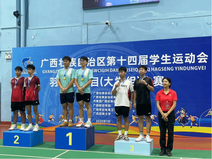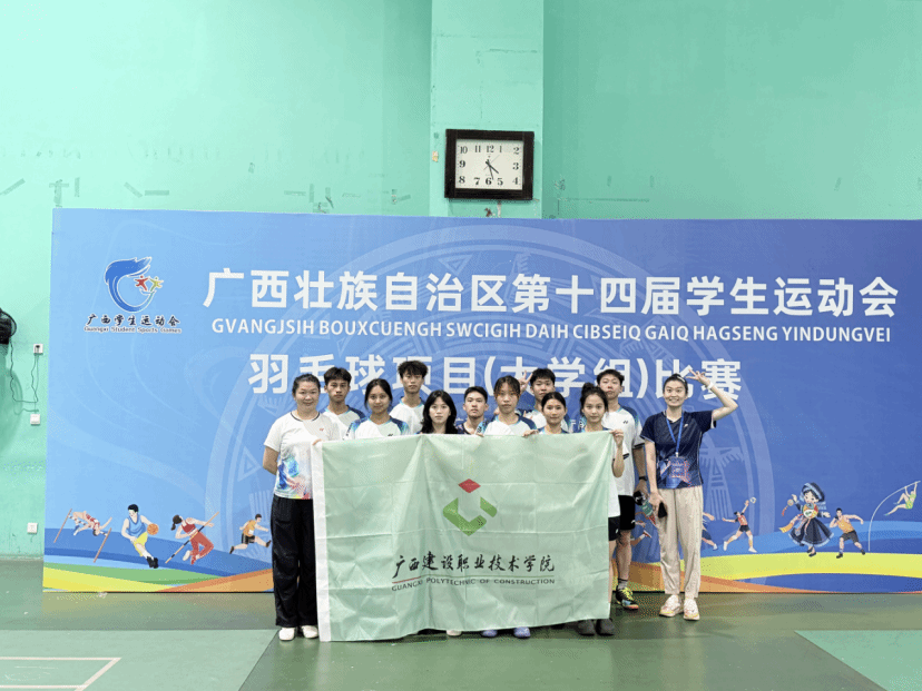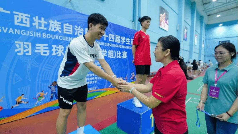 7月11日,自治区第十四届学生运动会羽毛球项目圆满落幕。乐鱼全球最大体育平台_乐鱼(中国)代表队由孙扬、李金鸿两位老师带队,经过四天鏖战,在高职高专组中勇夺男单银牌(李光浚)、男双铜牌(李光浚、莫俊杰)、女双第四(方艳丹、莫月芝)、混双第六(方艳丹、宁润兴)及女团第七名,为学校“体教融合”育人实践再添生动注脚。