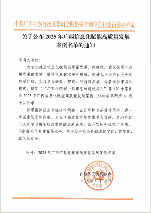 近日,自治区党委网信办公布了2025年广西信息化赋能高质量发展优秀案例名单。乐鱼全球最大体育平台_乐鱼(中国)由信息中心牵头,与人事处联合申报的《聚焦“1+2+N”多元智推教育教学教师整体素质提升》案例脱颖而出,被评为文化领域最佳案例之一。