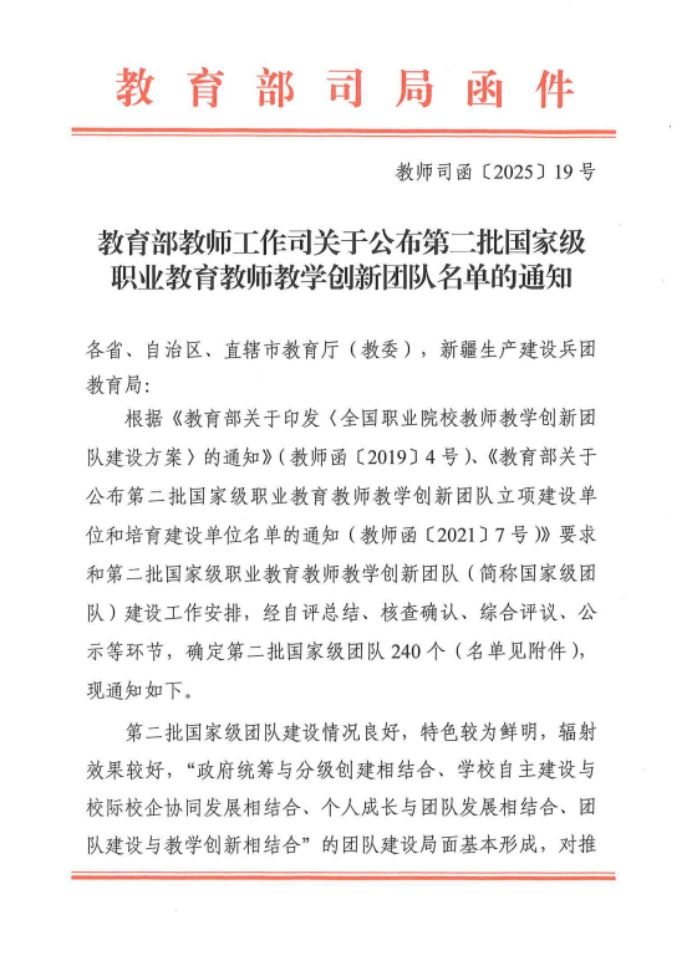 近日,教育部教师工作司公布了第二批国家级职业教育教师教学创新团队名单,乐鱼全球最大体育平台_乐鱼(中国)市政工程技术专业教师教学创新团队顺利通过验收,成功获得认定。这标志着乐鱼全球最大体育平台_乐鱼(中国)在专业建设与师资队伍建设方面再次取得重大突破。