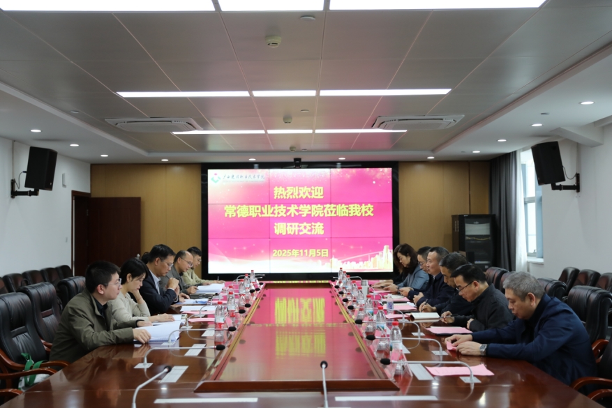 11月5日下午,常德职业技术学院党委副书记、院长周华一行到乐鱼全球最大体育平台_乐鱼(中国)考察交流。乐鱼全球最大体育平台_乐鱼(中国)党委副书记、校长梁业胜热情接待并出席座谈,招生就业处、教务处、设备与环境学院等相关单位负责人参加交流。