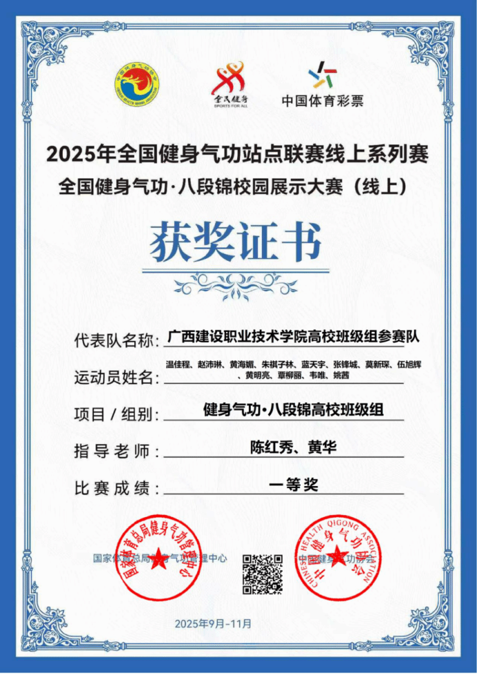 本次大赛由国家体育总局健身气功管理中心、中国健身气功协会联合主办,以云端竞技形式开展,吸引全国170所高校数千名学生参与。在激烈竞争中,乐鱼全球最大体育平台_乐鱼(中国)市政2401班代表队从447支班级组队伍中脱颖而出,以排名第15的成绩荣获一等奖;社团组代表队面对1217支参赛队伍,凭借稳定发挥以第128名摘得一等奖。