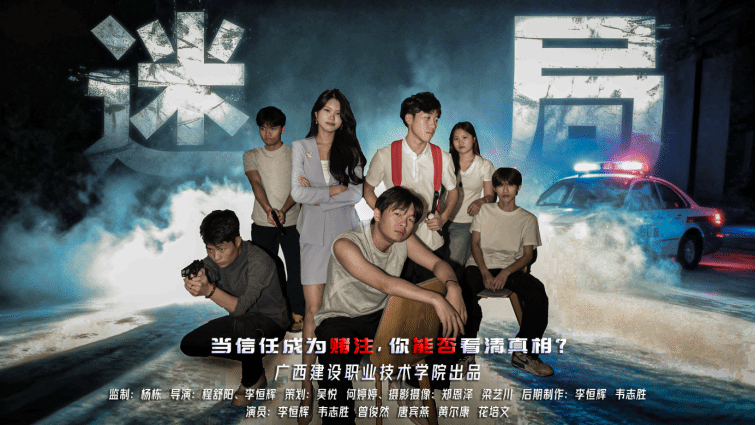 该作品由程舒阳、杨栋老师指导,李恒辉、韦志胜、曾俊然、唐宾燕、梁艺川、黄尔康、花培文、郑恩泽、何婷婷、吴悦同学共同创作完成。作品紧扣“筑牢青春防线,共筑诚信校园”主题,以大学生林墨的遭遇为主线,通过“街头试探”“三次交锋”“信任深渊”“黎明解救”四个层层递进的篇章,艺术化地呈现了诈骗陷阱的隐蔽性与复杂性,深刻揭示了在利益诱惑面前保持清醒、坚守诚信、筑牢思想防线的重要性。影片叙事流畅,悬念迭起,表演真挚,制作精良,生动诠释了新时代青年应有的警惕意识、辨别能力和价值坚守,最终从全区众多参赛作品中脱颖而出,获得佳绩。