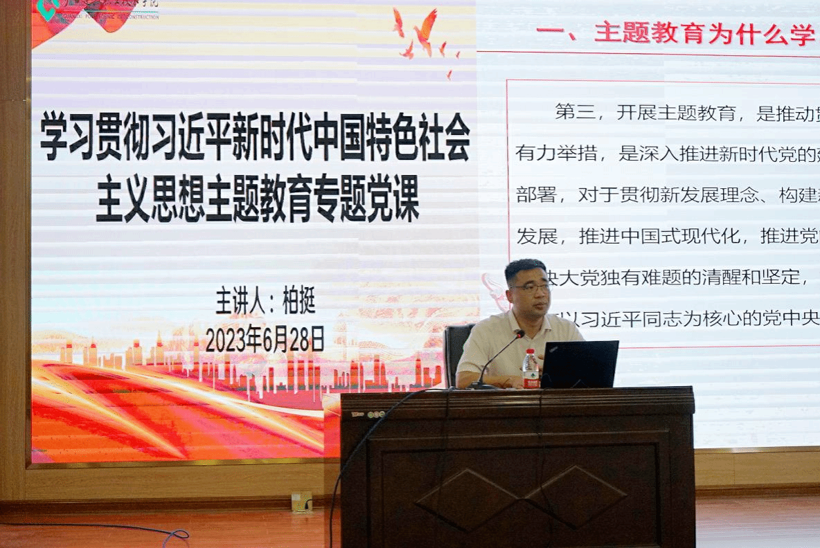 广西建院6月29日讯(设备与环境学院 文/李悉娴 图/徐晓雪)6月28日上午,学校副校长柏挺以《坚持以学促干推动主题教育走深走实,推进乐鱼全球最大体育平台_乐鱼(中国)毕业生高质量充分就业》为题,在学校四教二楼报告厅为设备与环境学院党总支、继续教育学院、招生就业处党员上党课。