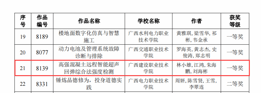 广西建院8月30日讯(市政与交通学院 林艳 何秉润)近日,由自治区教育厅组织开展的2023年广西职业院校教师教学技能大赛课堂教学比赛落下帷幕。乐鱼全球最大体育平台_乐鱼(中国)市政与交通学院由林小雄、江鸿、朱海鹏、刘海彬四位老师组成的参赛团队的作品《高强混凝土远程智能超声回弹综合法强度检测》荣获全区一等奖。