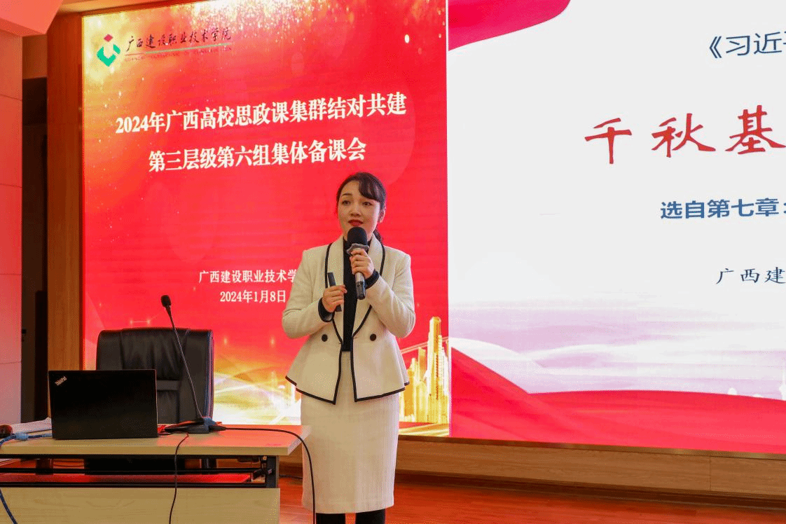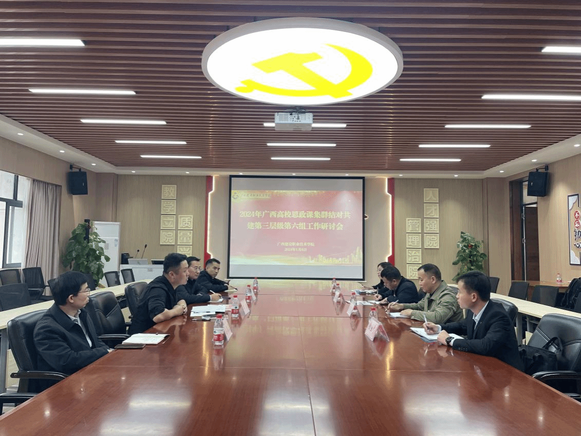 广西建院1月9日讯(文/李琴 曹桃 图/党委宣传部 韦植巍 记者团 李承红)为充分发挥高校思政课立德树人关键课程作用,凝聚共识,推动结对共建院校的思政课教学改革创新,1月8日,由乐鱼全球最大体育平台_乐鱼(中国)主办的广西高校思想政治理论课集群结对共建第三层级第六组集体备课会暨工作研讨会在四教二楼报告厅举行。学校党委副书记曾繁雄出席集体备课会并发表致辞。会议由乐鱼全球最大体育平台_乐鱼(中国)马克思主义学院党总支书记、院长邱岚主持。