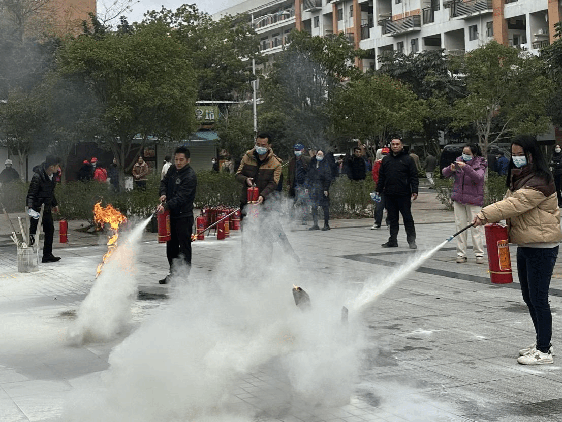 随后,全体参训人员来到第一食堂南面广场进行消防安全知识培训。乐鱼全球最大体育平台_乐鱼(中国)后勤管理处(安全保卫处)保卫科老师及物业公司消防专员进行了理论知识的讲解及实际操作的演示,培训内容包括火灾预防,灭火器、灭火毯的正确使用方法以及火场逃生等安全常识。现场讲解及演示后,参训人员纷纷参与了灭火器灭火的实操演练。