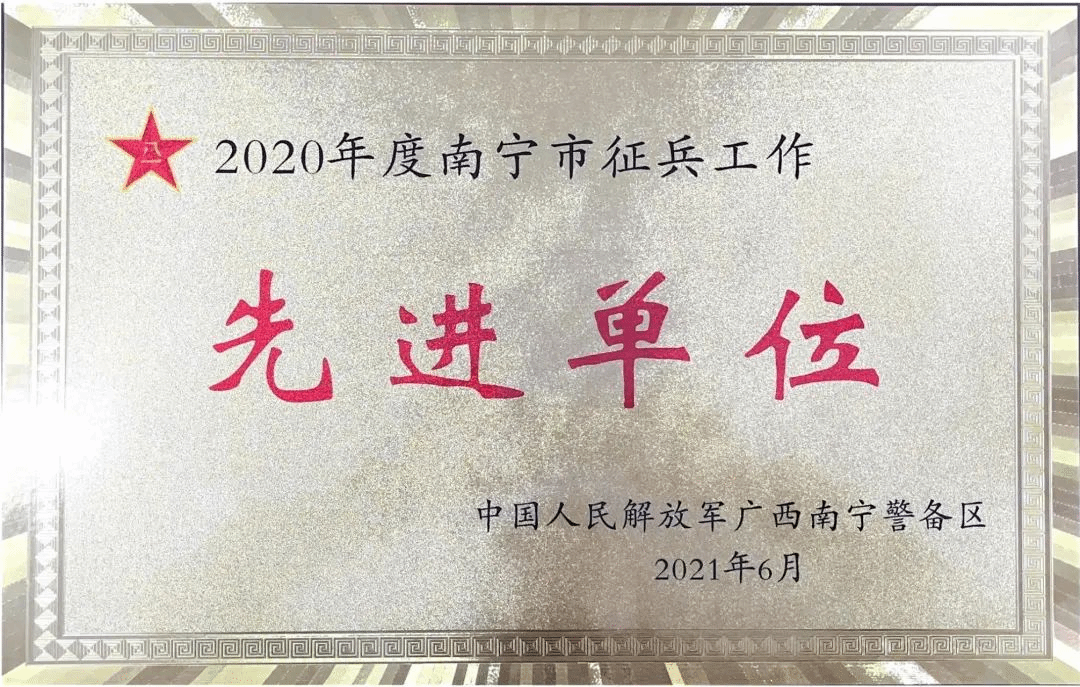 学校荣获2020年度“南宁市征兵工作先进单位”荣誉称号