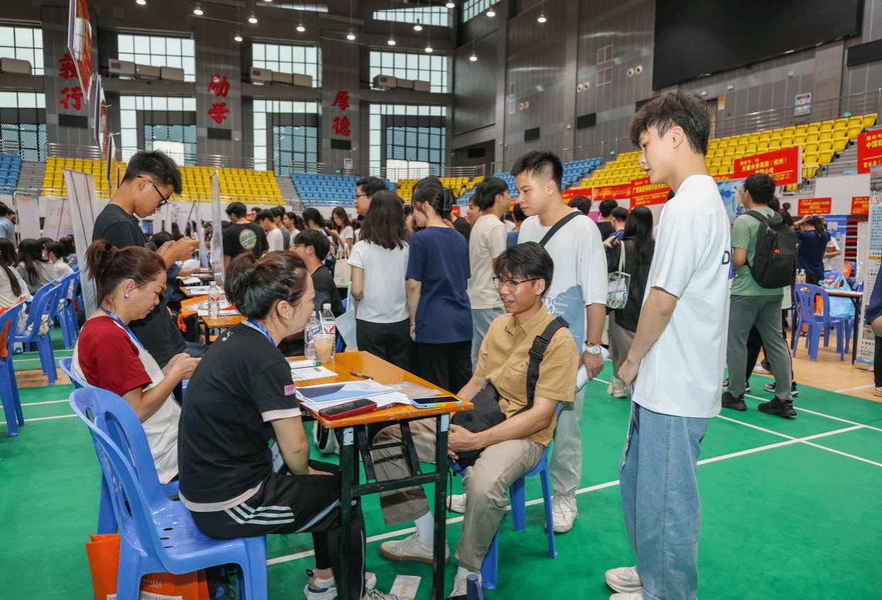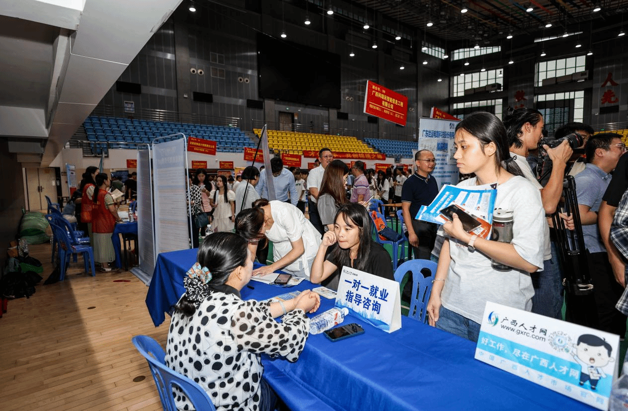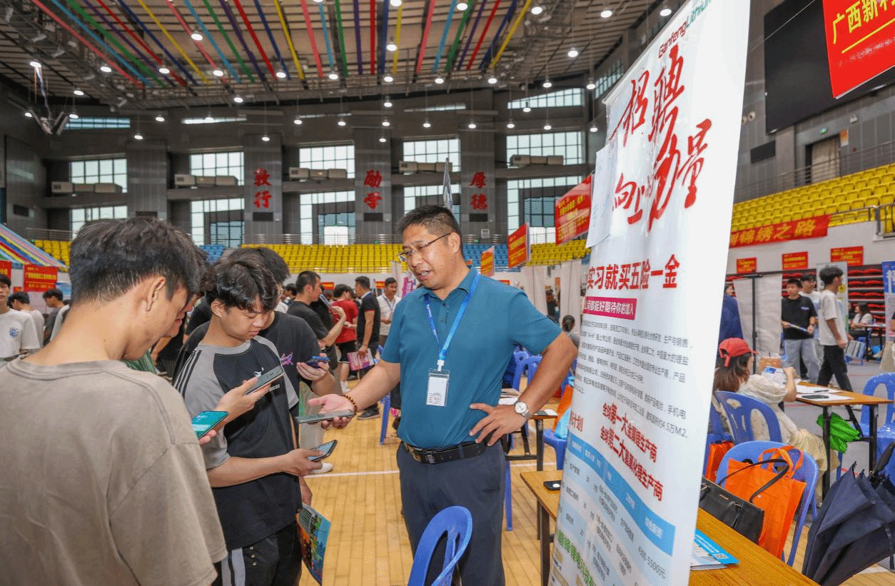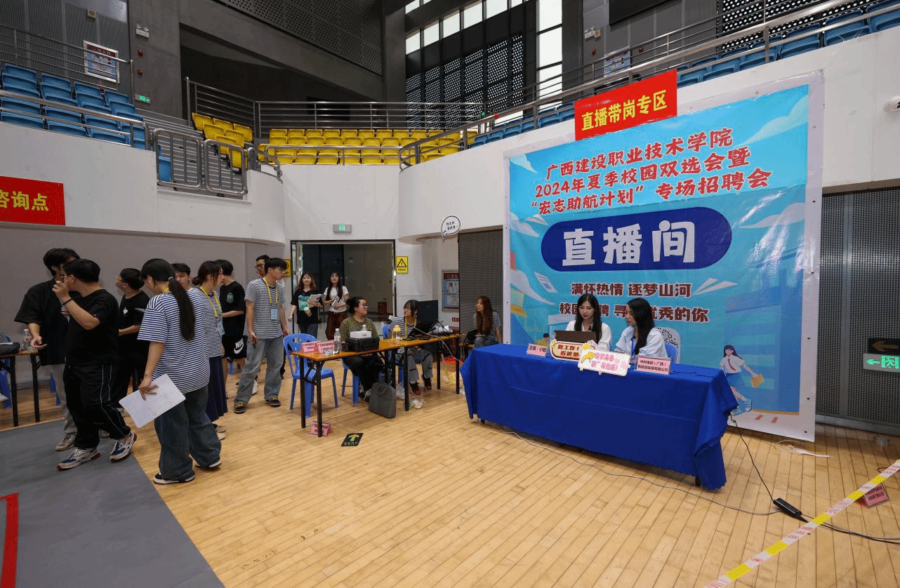 广西建院6月27日讯(文/ 招生就业处 覃春华 图/党委宣传部 韦植巍 记者团 杨贵维 李承宏)为贯彻落实教育部、自治区教育厅关于做好普通高校毕业生就业创业工作的部署,持续推进“书记校长访企拓岗促就业”“百日冲刺”行动,促进2024届毕业生充分就业,6月26日,学校在体育馆举办2024年夏季校园双选会暨“宏志助航计划”专场招聘会。