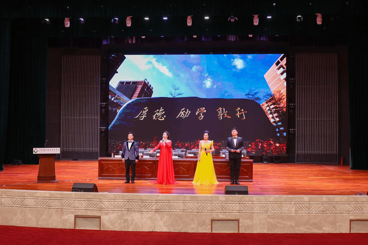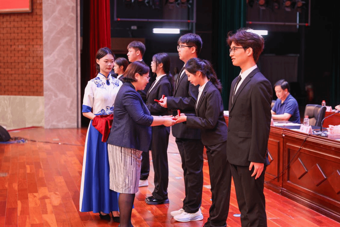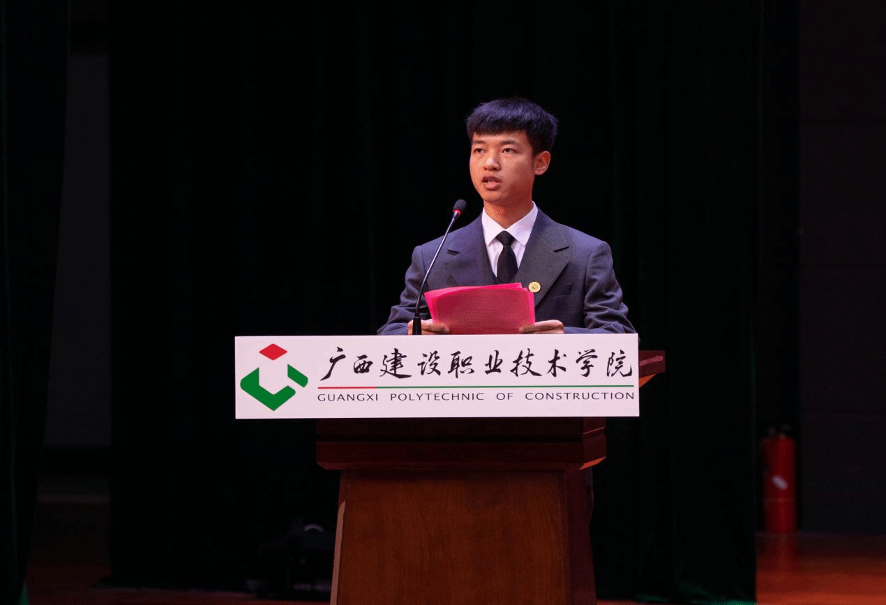 大会在庄严的国歌声中拉开序幕。刘晓红书记授予新生代表学校徽章,全体新生起立,庄严地将校徽佩戴于胸前,从此与建院血脉相连,“厚德 励学 敦行”的校训精神在一代代广西建院人中薪火相传,汇聚成奋进新时代的精神力量。