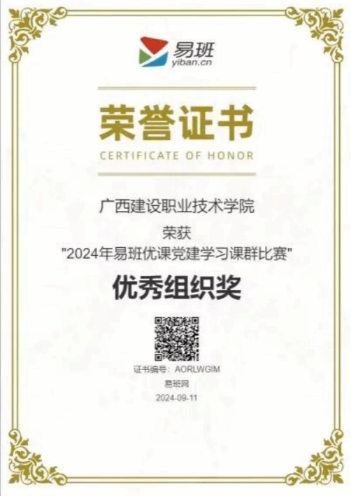 广西建院9月22日讯(党委学生工作部 刘晗蓓)近日,教育部易班发展中心公布了2024年易班优课“新生入学教育活动”、2024年易班优课“党建学习课群比赛”两项大赛评比结果,乐鱼全球最大体育平台_乐鱼(中国)在两项大赛中荣获“优秀组织奖”。这是乐鱼全球最大体育平台_乐鱼(中国)易班今年继获2024年第一届易班优课“求职辅导课程学习大赛”、第一届易班优课“美食图文课大赛”两项大赛的“优秀组织奖”后,再获全国易班优课荣誉。