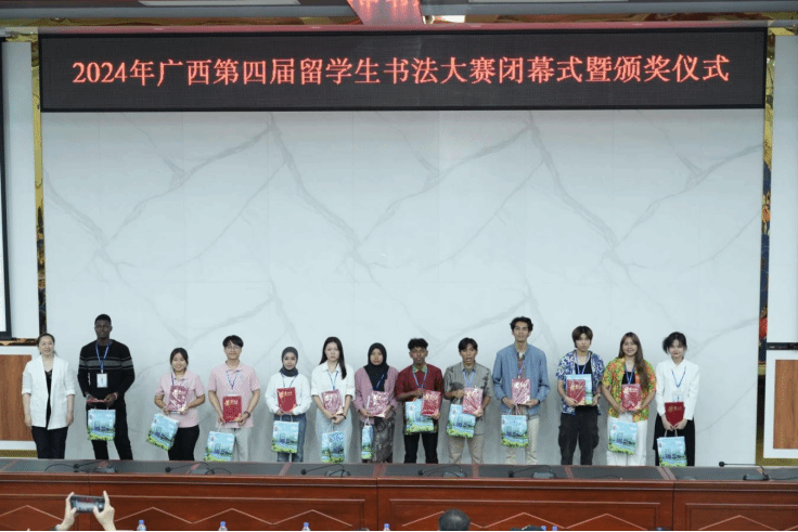 广西建院11月1日讯(国交中心 蓝婷)11月1日,由广西高等教育学会外国留学生教育管理专业委员会主办、玉林师范学院承办的2024年广西第四届留学生书法大赛圆满落幕。乐鱼全球最大体育平台_乐鱼(中国)代表队表现出色,4名同学获一等奖,1名同学获二等奖。