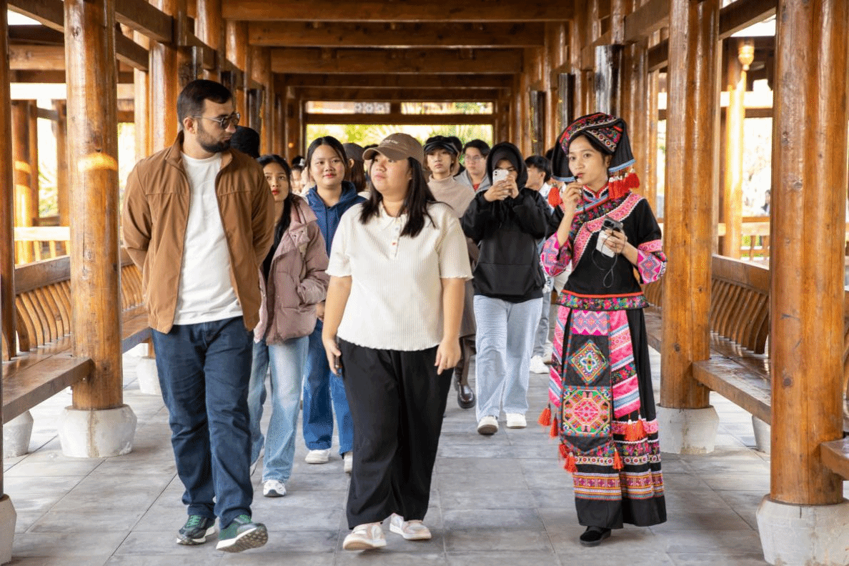 留学生们在廊中驻足,聆听着中国学生对风雨桥历史和文化的介绍,他们对这种将自然景观与人文艺术完美结合的乐鱼全球最大体育平台_乐鱼(中国)形式表示了极大的兴趣。