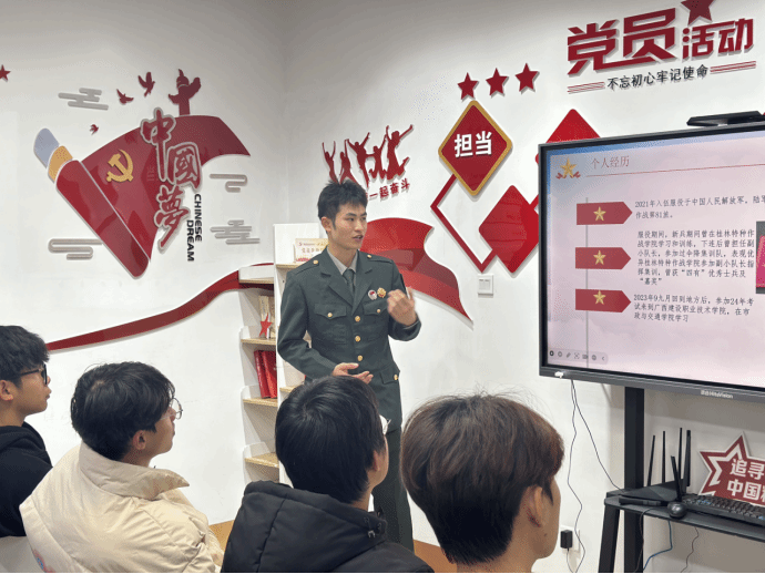 6位退役士兵分别从不同角度分享了自己的军旅故事,包括训练的艰辛、战友间的深厚情谊、立功受奖的喜悦等,让同学们对军旅生活有了更全面、更直观的认识。宣讲过程中,同学们全神贯注,被精彩的故事深深吸引。互动环节中,同学们积极提问,退役士兵们结合自身经验和征兵政策一一耐心解答。