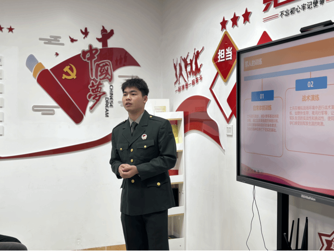 宣讲会特别邀请了乐鱼全球最大体育平台_乐鱼(中国)6位退役士兵担任主讲,他们用自己的亲身经历为同学们呈现了丰富多彩的军旅生活。退役士兵卢健勇同学曾服役于边防部队,他深情讲述了自己在驻边防部队的事迹。在艰苦的边防环境中,战士们不畏严寒酷暑,日夜坚守岗位,用青春和热血捍卫着祖国的每一寸土地,他们对祖国的忠诚和对人民的担当深深打动了在场的每一位同学。退役士兵黄明亮同学则分享了自己与空降兵的不解之缘,讲述了在空中翱翔的刺激与挑战,以及自己的使命感和荣誉感。退役士兵陈礼祖同学则为同学们讲述了西陆装甲兵的精彩事迹。他介绍了装甲兵在战场上的重要作用,从车组的操作到与战友们的协同作战,每一个环节都至关重要,同时也展现了部队的强大战斗力和团队协作精神。退役士兵黄春婷同学讲述了担任部队新闻报道员的故事,她用文字和镜头记录下部队的生活点滴与英雄事迹,展现了部队宣传工作的重要性。退役士兵陈乾同学则分享了在特种部队的作战经历,让同学们看到了特种部队战士的坚韧与果敢。退役士兵梁文林同学从自身出发,讲述了部队历练带给他的成长,从懵懂少年到有责任、有担当的热血青年,军队生活让他收获了宝贵的人生经验。