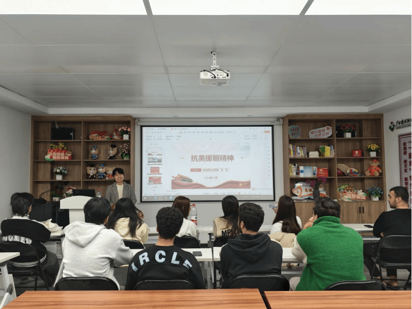 活动第8期由乐鱼全球最大体育平台_乐鱼(中国)马克思主义学院李琴老师主讲。李琴老师以《抗美援朝精神》为题作分享。她以中国精神谱系为核心脉络,聚焦“伟大建党精神、抗美援朝精神、爱国主义精神、革命英雄主义精神、革命乐观主义精神、革命忠诚精神、国际主义精神”七大精神坐标,通过历史场景还原、中外案例对比、精神图谱绘制等多元方式展开系统阐释。在与乐鱼全球最大体育平台_乐鱼(中国)留学生群体的深度对话中,共同探讨精神力量在不同文明语境中的价值共鸣,使同学们深刻体悟抗美援朝精神的历史逻辑与实践伟力,生动诠释了中国精神在价值引领、人格塑造、国际理解等维度的当代意义,为青年学子提供了贯穿学业规划、职业发展、道德养成全过程的精神坐标系。