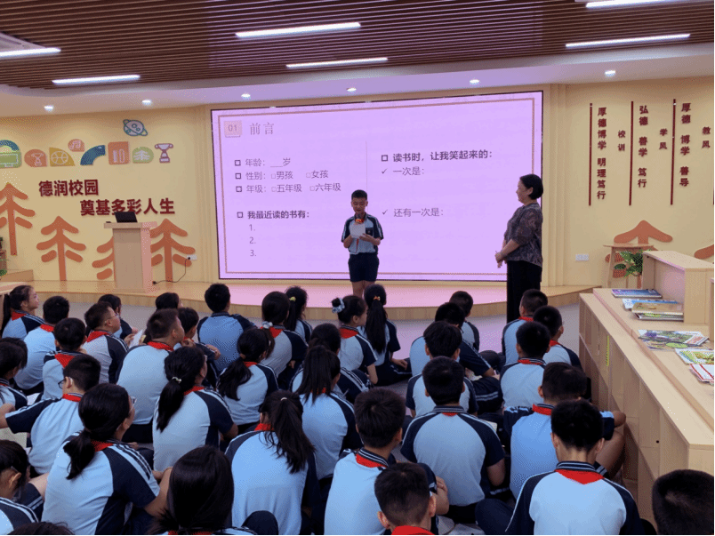 活动中,阅读推广团队周慧玲老师通过问卷调查了解学生们的阅读习惯,引导学生们分享阅读中的快乐时刻。活动现场气氛热烈,学生们踊跃发言,分享自己在阅读中收获的欢笑与感动。