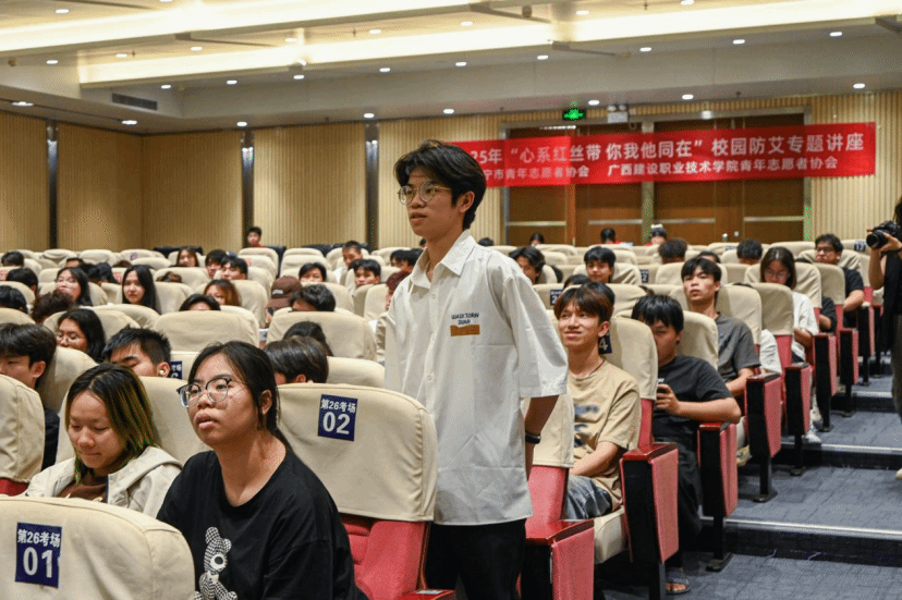 讲座中,覃威翱医师以“艾滋病防治知识及青年学生行为干预” 为主题,通过11个真实案例,讲解艾滋病对个人、家庭和社会的危害,提醒同学们增强自我保护意识。他从艾滋病定义、预防方法、行为干预三方面展开,详细介绍了HIV病毒特性、传播途径和致病机制,纠正“日常接触感染”等误区。覃威翱医师强调了掌握性健康知识、提高自我保护意识和技能的重要性,并提醒大家拒绝毒品,自尊自爱,树立健康性行为观念,科学对待艾滋病检测治疗。