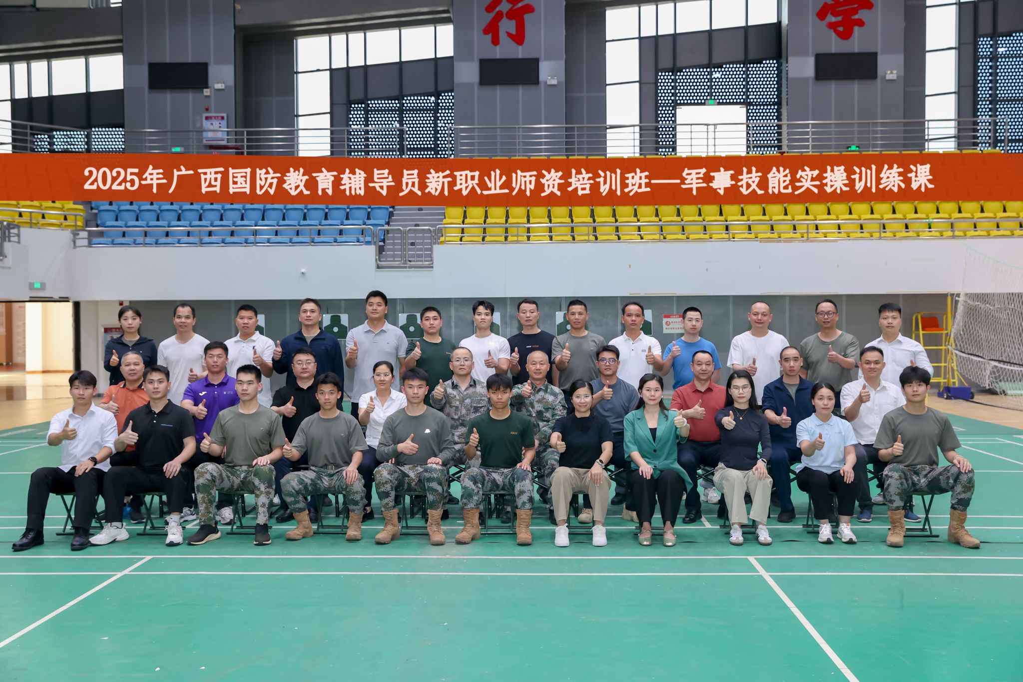 广西建院4月30日讯(艺术设计学院 文/周楠 图/黄海文)4月25日,2025年广西国防教育辅导员新职业师资培训班—军事技能实操训练课在乐鱼全球最大体育平台_乐鱼(中国)举办。本次培训由自治区退役军人培训中心主办,来自全区各地的31名学员参加,旨在通过校地携手,打造一支“军事素养过硬、教学能力突出”的国防教育师资队伍,为全民国防教育高质量发展注入新活力。国防教育工作室、退役士兵协会骨干成员全程配合协助项目演练。