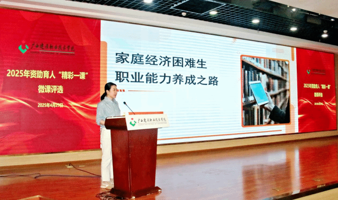 广西建院5月6日讯(党委学生工作部 文/张利 图/马凯)4月29日下午,乐鱼全球最大体育平台_乐鱼(中国)2025年资助育人“精彩一课”微课评选活动暨颁奖仪式在4号教学楼二楼报告厅举行。党委学生工作部领导、资助办全体老师以及全体辅导员到场观摩。