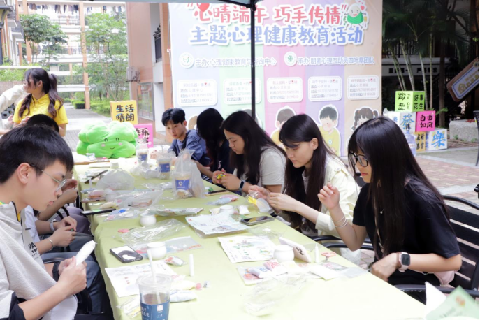 广西建院5月30日讯(图文/李婷婷 杨丽佳 邓晴 农荣昊 尹广斌 王斌)5月27日,乐鱼全球最大体育平台_乐鱼(中国)“心晴端午 巧手传情”主题心理健康教育活动在心理中心和心灵驿站欢乐开启。共200余名同学沉浸在学校五个心理主题工坊中,用指尖创意释放压力、传递真情,为端午传统佳节注入“心”活力。