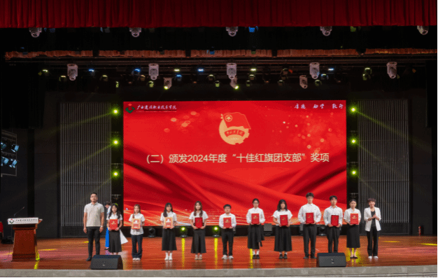 张文鼎代表班级上台领取2024年度“十佳红旗团支部”奖状
