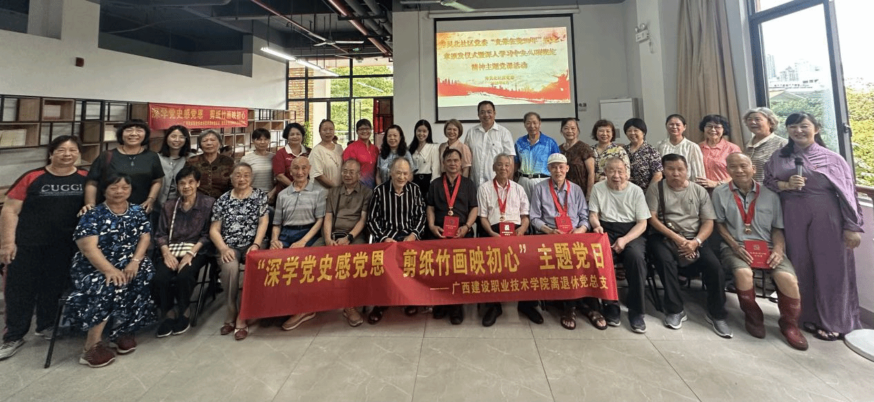 活动伊始,党员们在社区书记陈秀蓉带领下重温入党誓词,表达忠诚信仰。现场为“光荣在党50年”老党员代表颁发了纪念章,传递组织关怀。广西工业职业技术学院退休教师李燕带领大家重温了百年党史红色记忆。