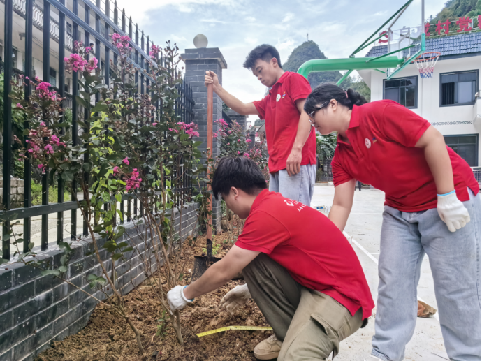 近日,乐鱼全球最大体育平台_乐鱼(中国)乐鱼全球最大体育平台_乐鱼(中国)与规划学院“乡建使者 丛获新生”实践团赴河池市都安瑶族自治县加范村、自成村开展“三下乡”社会实践活动。实践团依托学院园林工程技术、风景园林设计、城乡规划等专业优势,紧密聚焦乡村实际需求,秉持因地制宜原则,盘活乡村闲置资源,匠心打造生态微景观,将课堂所学转化为生动实践,为和美乡村建设注入青春动能。