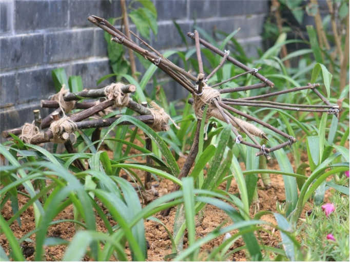 实践团应自成村村委的建设需求,将村部办公楼门前两块亟待美化的空地作为绿化微改实践重点。实践团成员结合当地自然条件,选用耐旱易成活植物进行景观搭配,并巧妙利用山上废弃的木头、竹子、枯树枝等资源,“变废为宝”制作园林小品进行点缀,通过绿化微改将设计蓝图转化为“推窗见绿”的生动现实。这些“小而美”的绿化微改实践,既能直观地提升村容村貌,让村庄“靓起来”,又能满足当地村民的审美需求以及对绿色美好生活的热切向往。