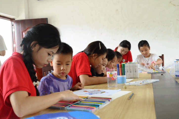 文化润疆:非遗传承育新苗。实践团深入科甲村开展“非遗文化润童心”美育课堂活动。在活动中,同学们耐心指导边疆儿童绘制富有民族特色的非遗绘画作品,通过这种寓教于乐的方式,将中华优秀传统文化以生动有趣的形式深深植入孩子们的心田。