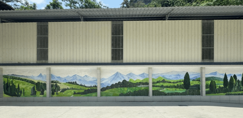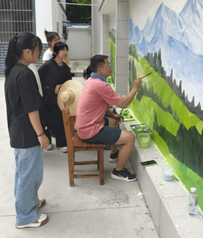 在万茂村村委会,一排超过16米的白墙在阳光下有些晃眼。实践团此行的主要任务,就是帮村委会将这片白墙变成巨幅的绿色发展主题墙绘,在提升村容村貌的同时,更将“绿水青山就是金山银山”理念以耳濡目染的方式印入乡亲们的脑海。