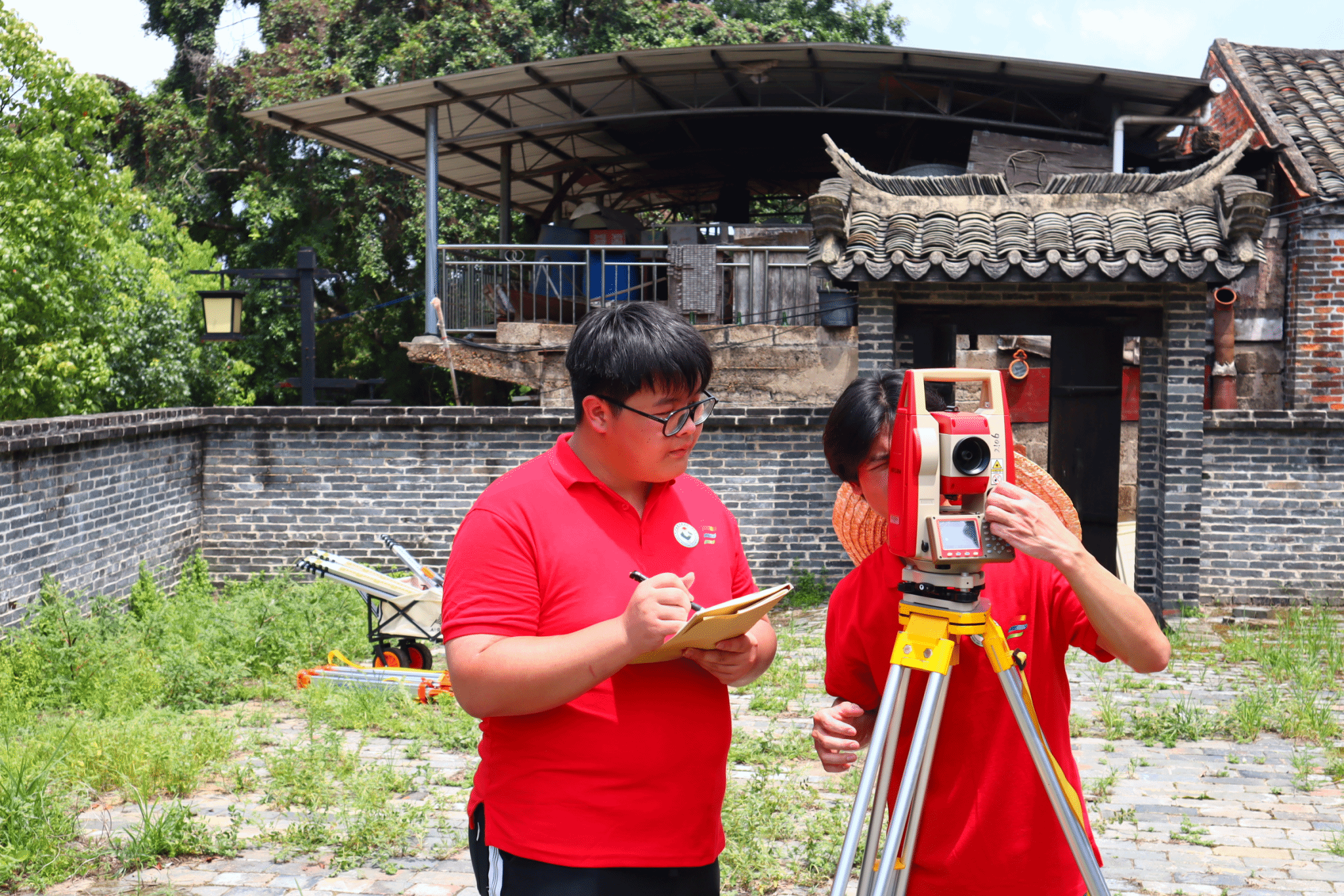 在专业教师指导下,实践团运用全站仪、测绘仪等设备,对三江坡传统乐鱼全球最大体育平台_乐鱼(中国)开展精准测绘。通过三维建模技术,将梁柱纹样、院落布局等乐鱼全球最大体育平台_乐鱼(中国)元素转化为数字化档案,不仅丰富了当地古建数据库资源,更为后续修复与活化利用提供了科学依据。