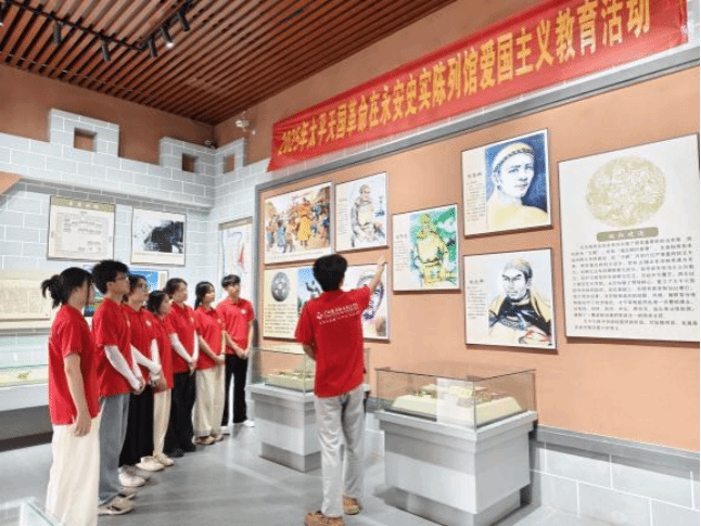 活动期间还实践团开展了庄重而深刻的红色教育实践活动。在太平天国开国封王地,实践团成员们怀着崇敬的心情参观了历史陈列馆和古乐鱼全球最大体育平台_乐鱼(中国)遗址。通过讲解员的生动讲述,大家深入了解了太平天国运动兴起的历史背景、发展过程及其深远影响。一幅幅泛黄的历史图片、一件件珍贵的文物实物,仿佛将大家带回了那个风云激荡的年代。成员们认真聆听,不时驻足凝视,深刻感悟先辈们反抗压迫、追求变革的斗争精神,体会历史的厚重与民族的坚韧。