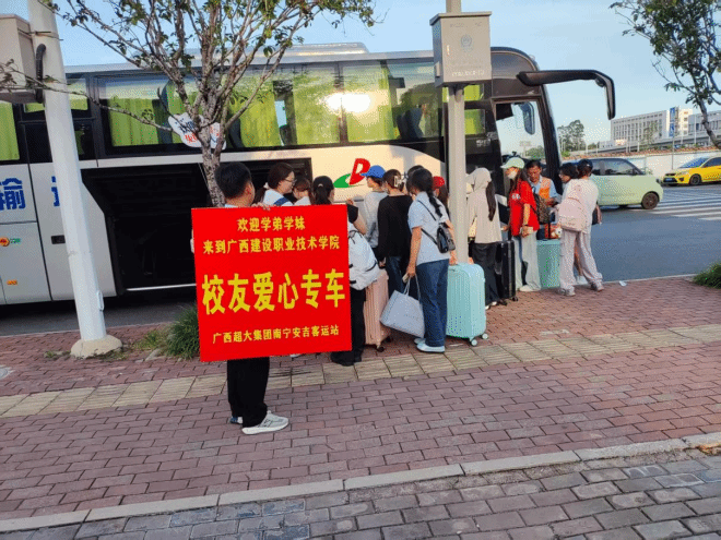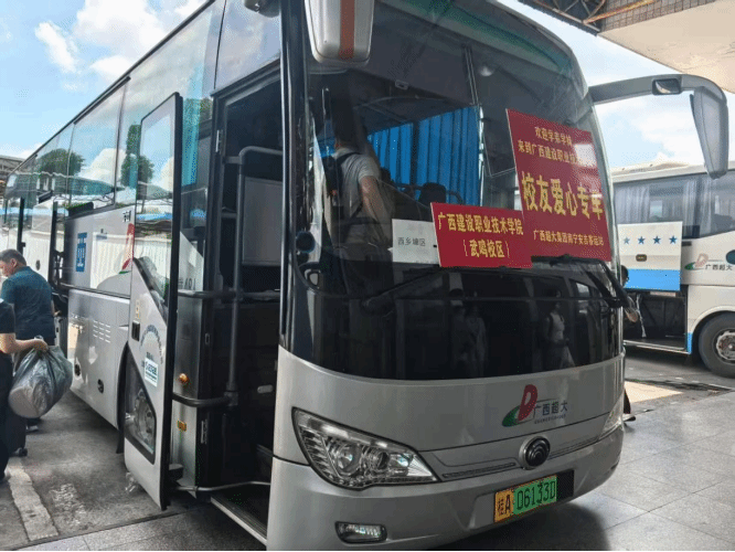 捐赠用车服务暖心迎新,退役军人的“硬核”浪漫。2025年迎新季,得知武鸣校区迎新运输压力较大,范蓓龙主动联系母校,无偿捐赠专属用车服务,用于新生接待工作。这些车辆承担了武鸣校区4个学院3500余名新生的接站与转运任务,累计发车20余班次,行驶里程达2000公里,有效缓解了校区的交通压力。身着超大集团制服的驾驶员们专业、规范的服务,也成为迎新路上一道亮丽的风景。