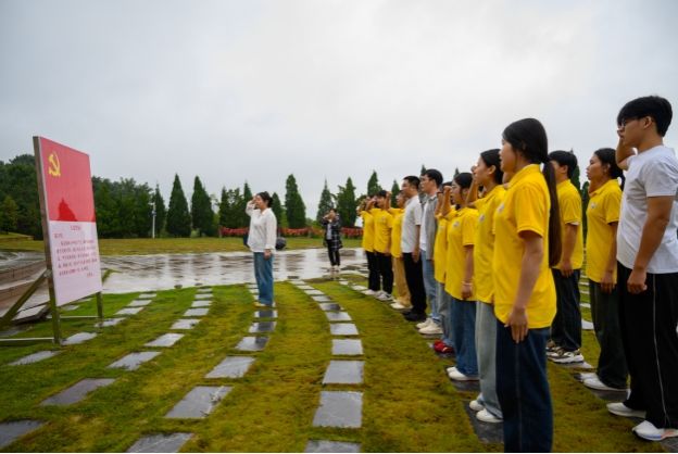 沉浸式党史课堂:在红色地标中筑牢信仰根基。在桂林八路军办事处旧址,师生通过历史文物与图文资料,重温抗战时期中国共产党为民族复兴所进行的艰苦卓绝斗争。在兴安红军长征突破湘江烈士纪念碑园,全体党员庄严肃立,敬献鲜花,面向党旗重温入党誓词,铿锵誓言回荡在纪念碑前。