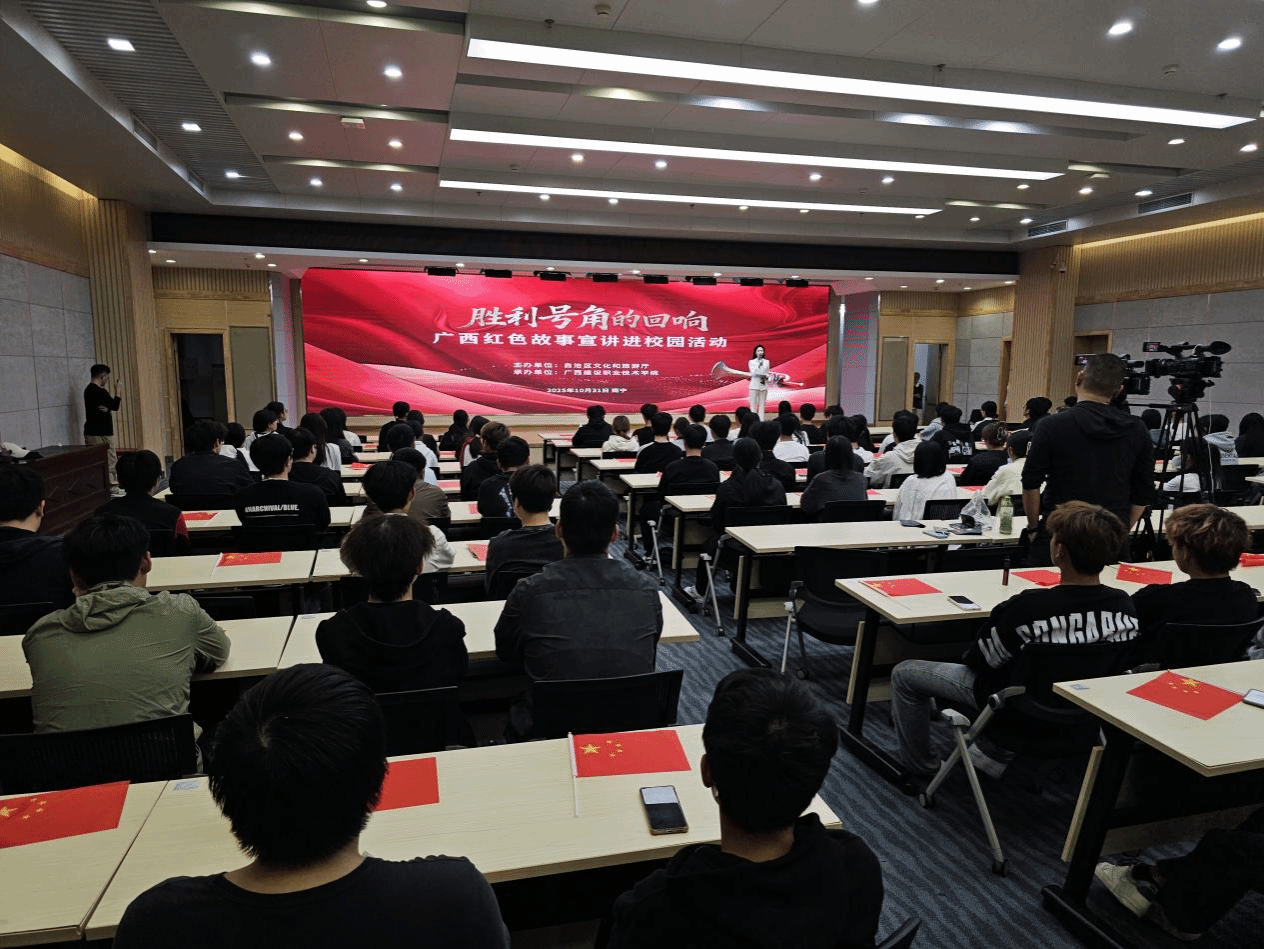 为深入传承红色基因,创新思政教育形式,10月31日,“胜利号角的回响”2025年广西红色故事宣讲进校园活动在乐鱼全球最大体育平台_乐鱼(中国)四教二楼报告厅举行。活动由自治区文化和旅游厅主办、乐鱼全球最大体育平台_乐鱼(中国)承办,通过讲述红色故事、传颂英雄事迹,为师生带来一堂生动而深刻的思政大课。