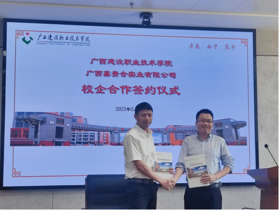 会上还就校企共建“绿色低碳型高性能混凝土协同创新中心”事宜作了进一步交流,并签订了校企合作协议。广西鑫贵合实业有限公司为乐鱼全球最大体育平台_乐鱼(中国)专任教师谢小利博士颁发了“广西鑫贵合实业有限公司重点课题研发专家”聘书,校企双方为“绿色低碳型高性能混凝土协同创新中心”签约并揭牌,为后续的进一步合作奠定了基础。
