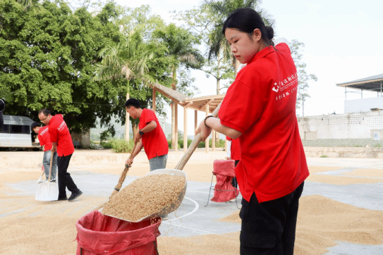 帮助村民收稻谷