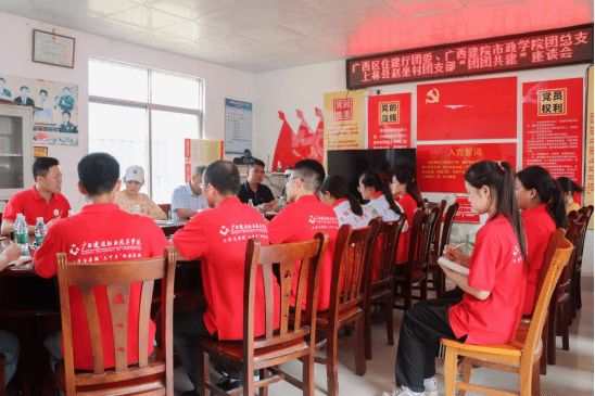 为切实丰富实践内容、拓展实践领域、创新实践形式,观察团作为主要发起方组织开展广西住房城乡建设厅团委(以下简称“厅团委”)、广西建院市政学院团总支、上林县赵坐村团支部“团团共建”座谈会暨广西建院“暑期‘三下乡’社会实践基地”揭牌仪式。厅团委书记姚磊在致辞中向同学们强调,要学会“自讨苦吃”,牢记党旗所指、青年所向,明白勇于钻研、增长才干,使自身拥有烈火真金,成为有为青年。同时也要通过支教活动传播爱心,激励自我、奋发自强,为住房城乡建设事业贡献青春力量。