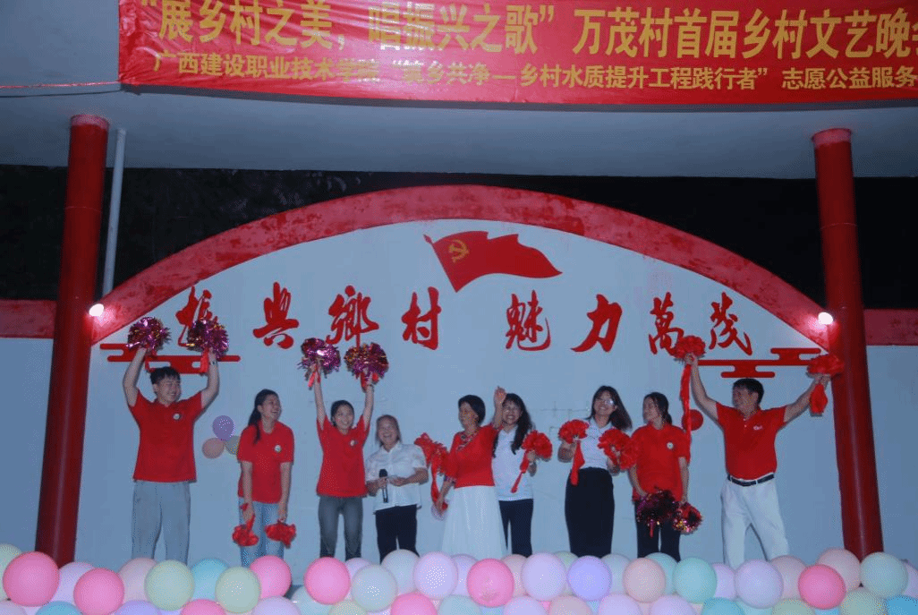 为积极探索乡村文化振兴的路径,打造乡村民族文化阵地,在驻村第一书记温昌盛的大力支持下,“筑乡共净”乡村振兴促进团携手万茂村村委在该村文化大舞台举办了“展乡村之美,唱振兴之歌”万茂村首届乡村文艺晚会,团队还为大舞台描绘了乡村振兴主题墙绘。在文艺晚会当天,百余名村民早早汇聚到文化大舞台前,随着舞台灯光的亮起,10余个精彩节目轮番上场,由志愿者和村民们组成的文艺表演队为大家带来了一场文化盛宴。