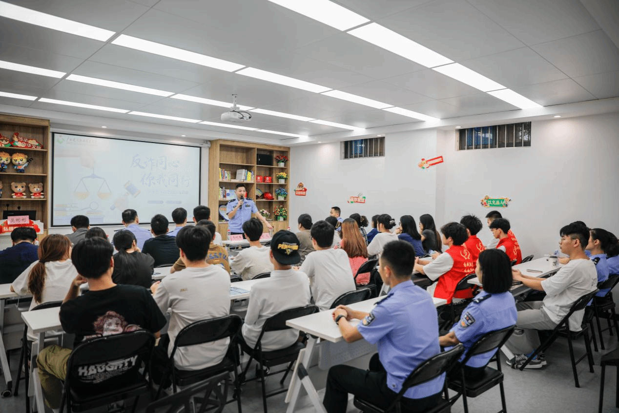 广西建院10月25日讯(设备与环境学院 文/廖红媛 银新月 图/毛森森)为进一步加大校园防诈骗宣传力度,增强学生防范电信诈骗意识,10月24日,学生社区安全协作中心、设备与环境学院学生公寓党建工作室联合组织开展“反诈宣传进校园,警校携手促平安”主题安全教育活动。南宁市公安局反诈支队及地铁分局西乡塘站派出所多名反诈宣传教官到乐鱼全球最大体育平台_乐鱼(中国)深入学生群体,开展校园反诈宣传教育活动,筑牢校园反诈“安全墙”。设备与环境学院党总支书记侯文淑、党委学生工作部宿管科科长陆洪先参加活动。