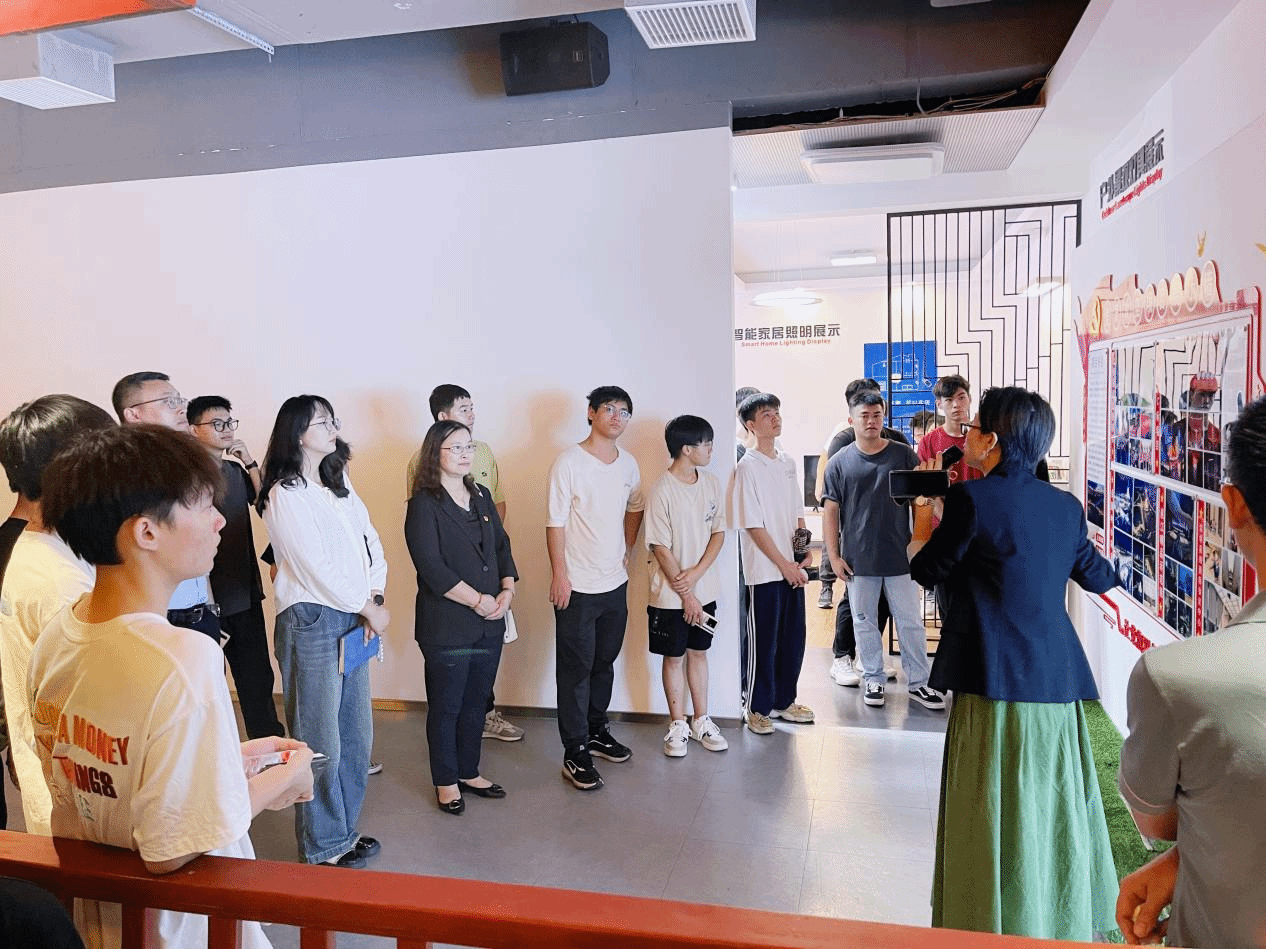 党支部副书记颜世华和副总经理都娜伊带领师生们参观了青松照明集团党建阵地、光知识科普区、灯光照明展厅、照明科技展厅等区域,在现场技术员的讲解引导下,师生们近距离感受不同领域的照明技术,更具体地了解了青松照明在技术研发方面的投入与成绩。